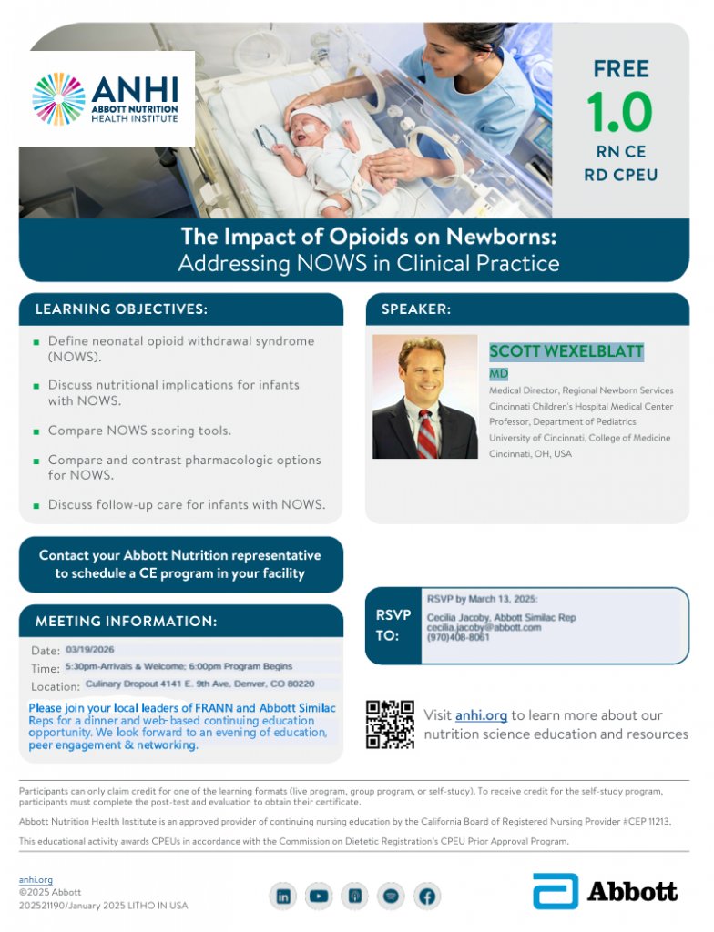 Join FRANN and Abbott for an educational dinner on March 19th.